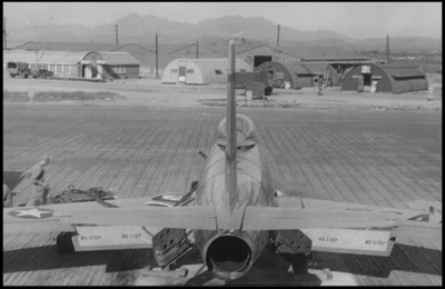 at Laredo AFB, Texas, 10 weeks at Nellis, seven months at Geiger Field