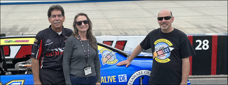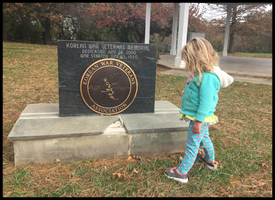 in front of the Delaware shaped memorial for the Korean War, dedicated