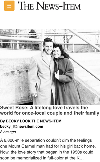 about Wally and Sweet Rose was published in the The News-Item newspaper