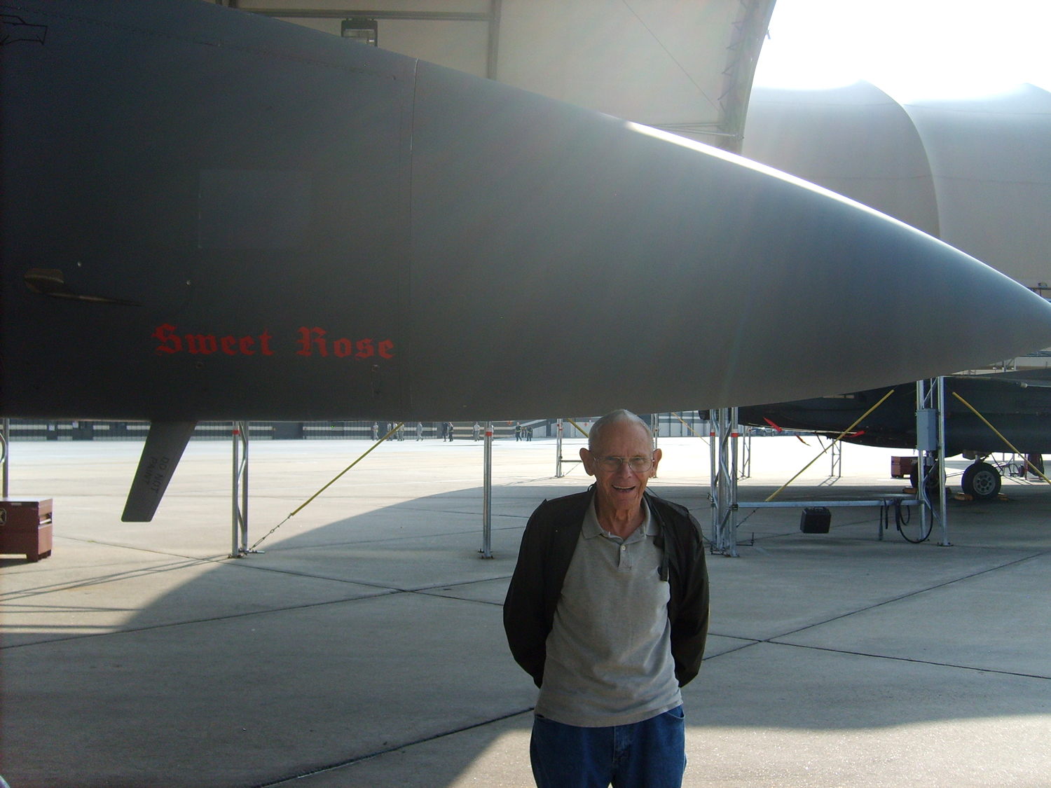 Wally Yocum was honored by the 336th at Seymour Johnson AFB in North Carolina in 2014, decaling an F-15E Eagle with his name on the cockpit “Cc Wally Yocum” and “Sweet Rose” on the nose. 89-0488 F-15E Eagle at Seymour Johnson AFB (September 2014). Wally Yocum and Edwin Williams talking. 'Sweet Rose' returns! 'Cc Wally Yocum' written by the cockpit in his honor. 'Sweet Rose' (II) and Wally. My father next to 89-0488. Talking stories at SJ Air Force Base - Edwin Williams and Wally Yocum. Tail: SJ (for Seymour Johnson AFB) 336 FS (for 336th fighter squadron) AF 89 (for air force built in 1989) 488 (serial number)