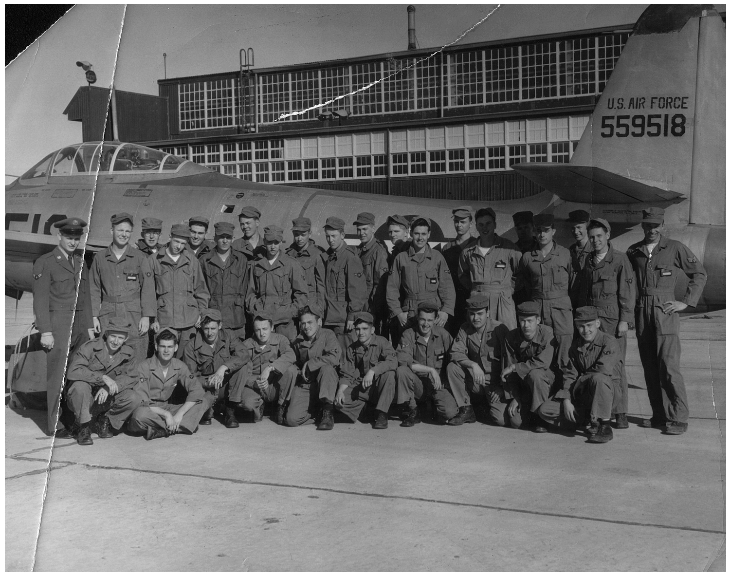 Group photo in front of US Air Force 559518 My father is second from the right (standing). My father was stationed at this base for 5 1/2 months. February 6, 1953