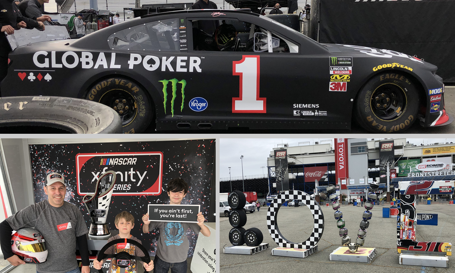 Shayne made it to Richmond Times-Dispatch website when we visited the Richmond Raceway. Great morning to visit and watch the race teams in practice. Link to the article: https://www.richmond.com/uploaded_photos/spo-bk/image_b5c877a8-5ff1-57c1-9cb5-417653c8a74e.html April 12, 2019 Steven proudly showing the sign "If you ain't first, you're last". Richmond Raceway, Virginia April 12, 2019