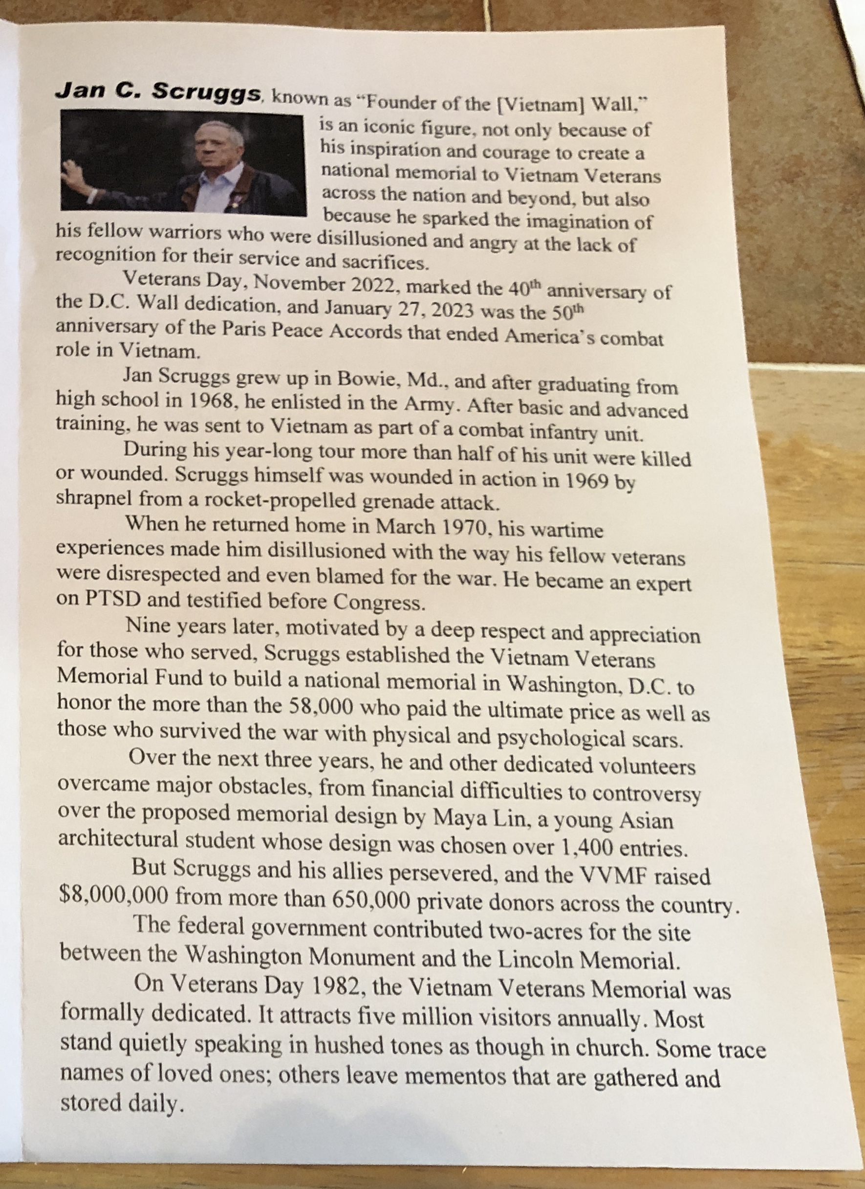 Vietnam Veterans Day Shayne following in Wallys foot steps... Strike Eagles Jr ROTC Guest speaker: Jan C. Shruggs "Founder of the (Vietnam) Wall" - Washington, DC in 1982 Click here for enlarged view of flyer on Jan C Shruggs. Established & Dedicated by Chapter 850 Vietnam Veterans of America and Kent County Levy Court March 23, 2023
