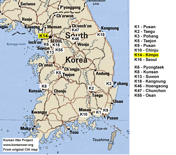 Kimpo Air Base Aerial (K-14) 1954 Photo from pilot Ken Ewing's slides Map (K-14) Source: http://www.2ida.org/koreaatourofduty/Maps/KimpoMap.html