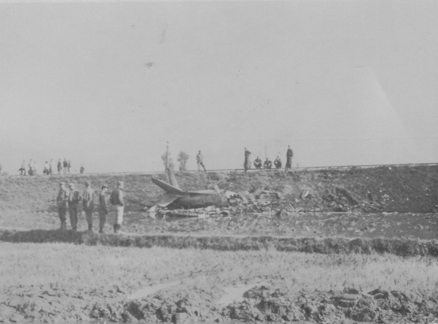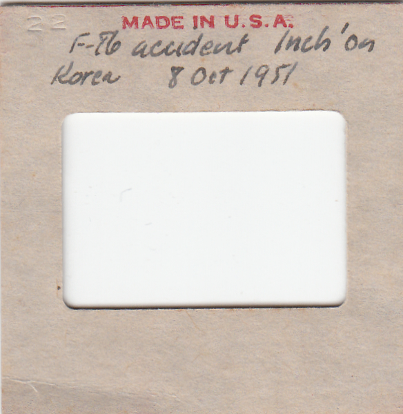 F86 crash Inch 'on, Korea October 8, 1951. Harry Cassleman is the person looking at the camera.