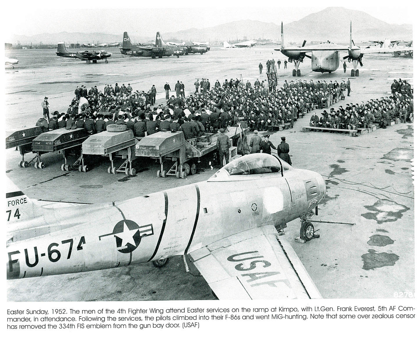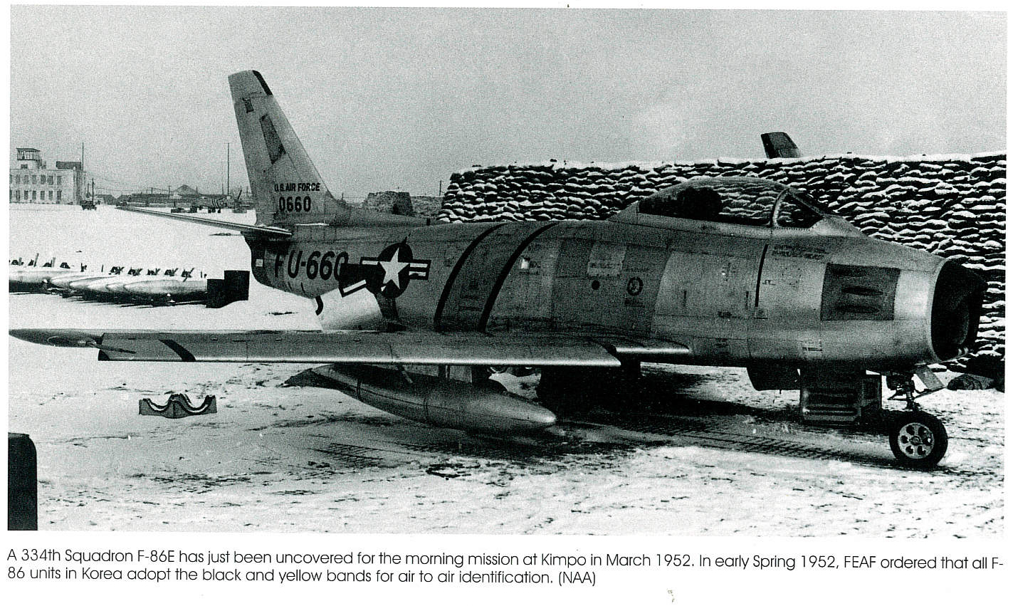 FU-667 tail shown on left. Year: 1952 (The 4th Fighter Wing in the Korean War - Larry Davis) |