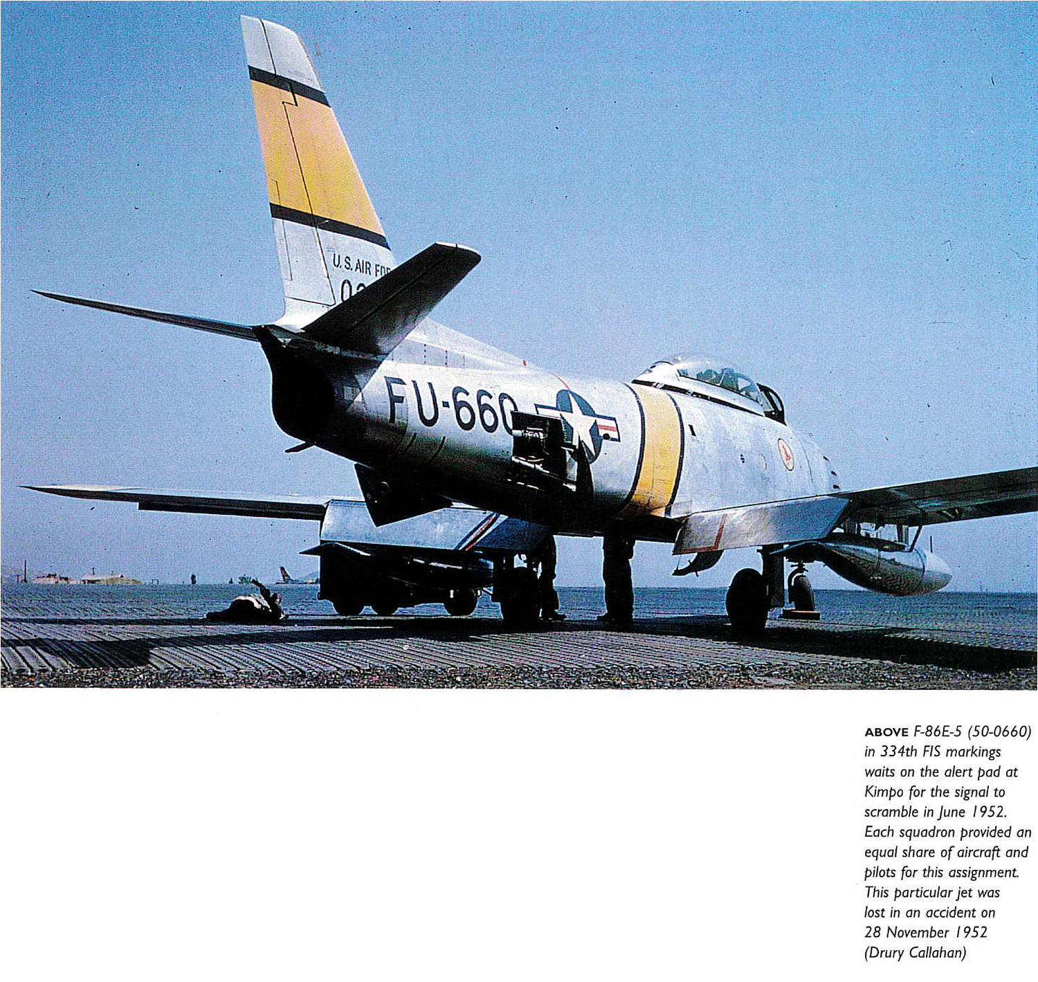 Circumstances of Loss: Code: A Accident Cause: Ground run-up fire [335th FIS Pilot: Koetje on 05.29.1952] (Mig Alley - Sabres vs. MiGs Over Korea - Thompson and McLaren) |