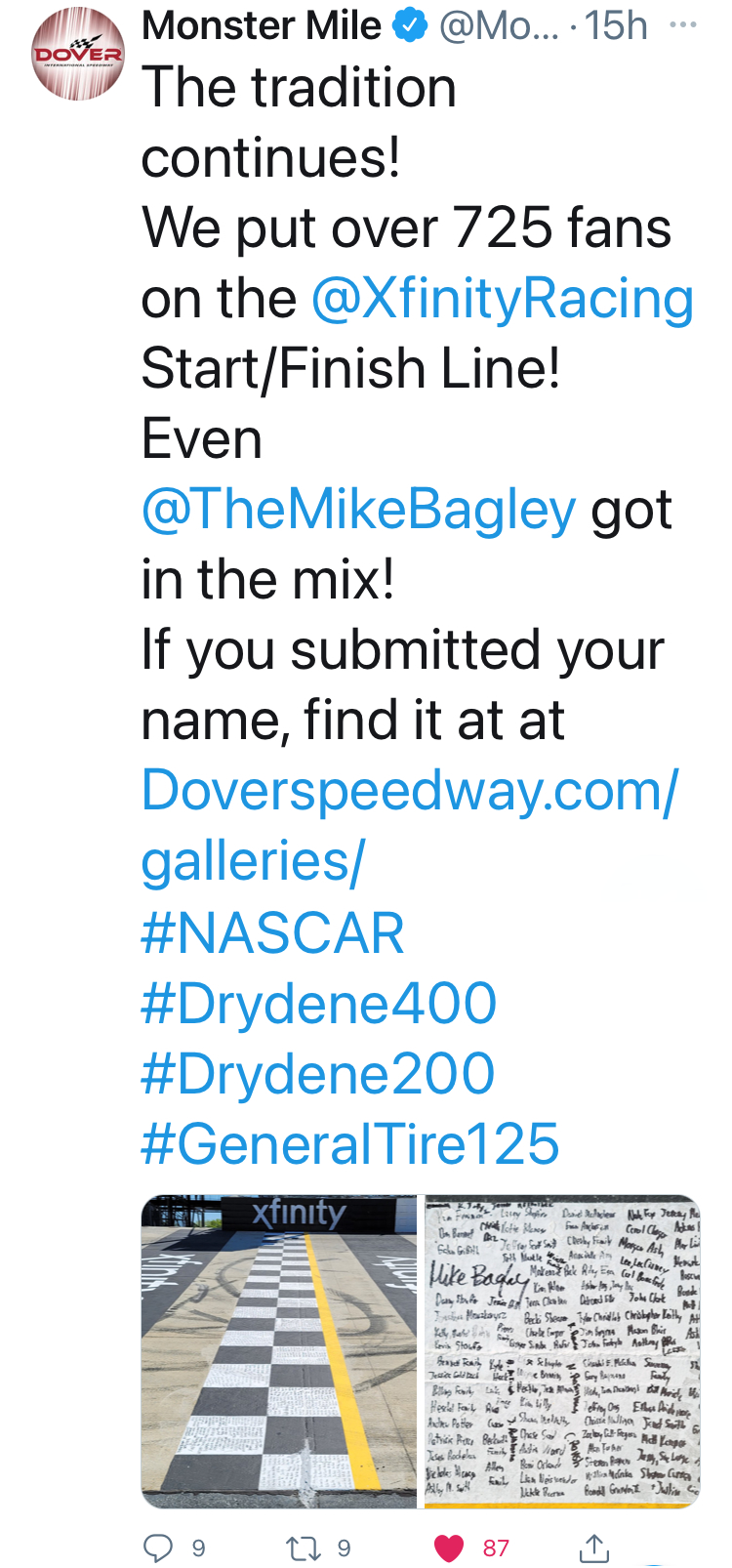 Other FRM tweets! Drydene 400 at Dover Speedway |